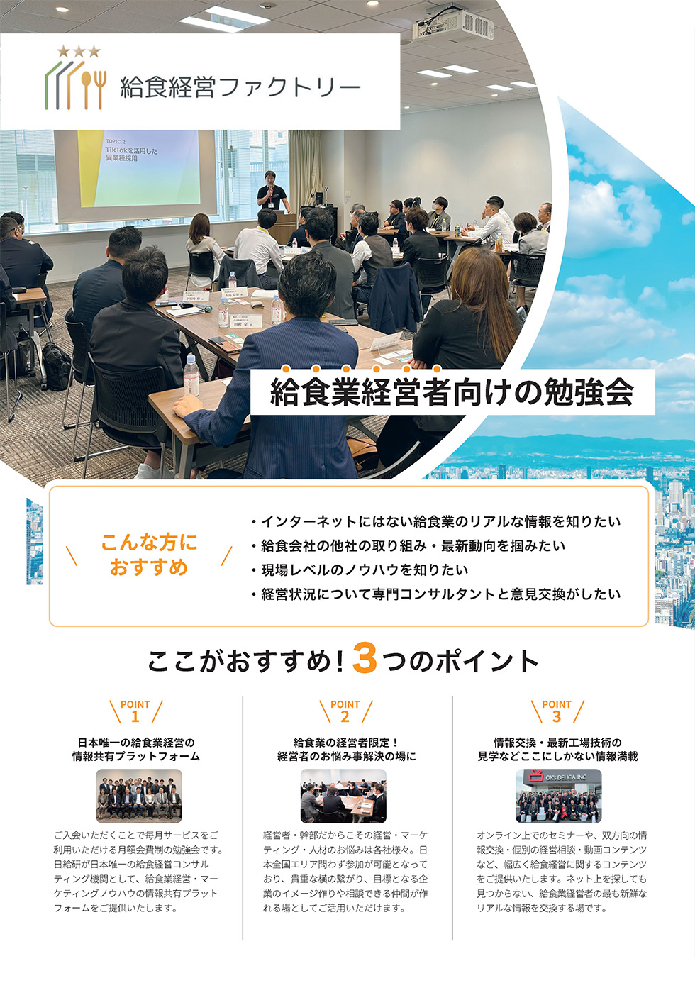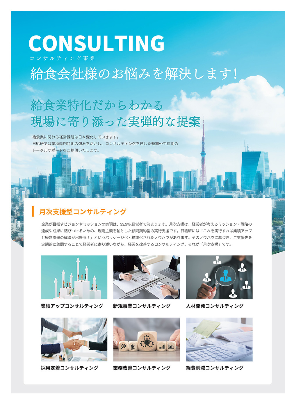 日本給食業経営総合研究所の事業内容やサービスについてご紹介する資料です。