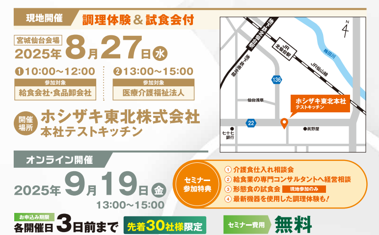 当日はこの裏側を余すことなくお伝え頂くと共に、強みである商品を体感していただく「試食会」もセットになったセミナーとなっています。