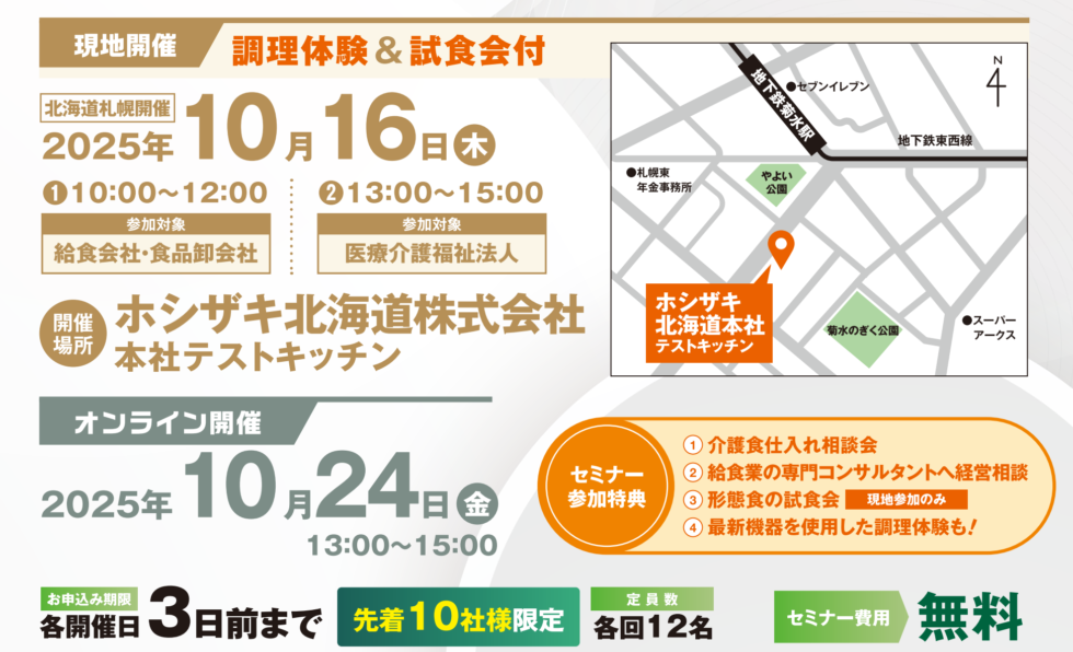 当日はこの裏側を余すことなくお伝え頂くと共に、強みである商品を体感していただく「試食会」もセットになったセミナーとなっています。